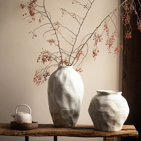 Kunstvolle Hochwertige Wabi-Sabi-Stil Japanische Rustikale Neue Chinesische Keramik Wohnzimmer Blumenarrangement Vintage Zen Vase Keramikvase
